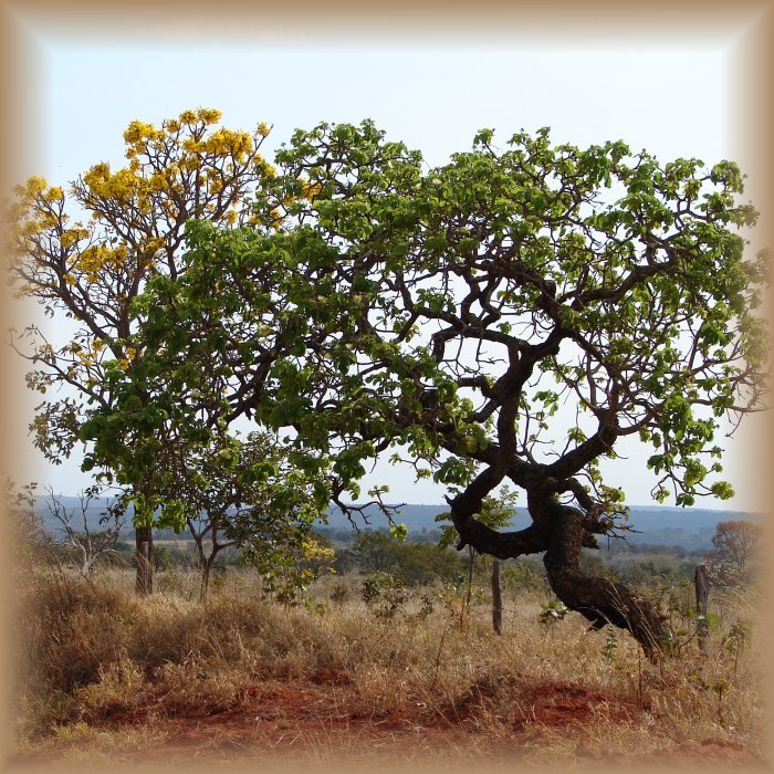 Vejam nessa foto duas potencias do nosso cerrado. O ipê amarelo ao lado do pequizeiro: