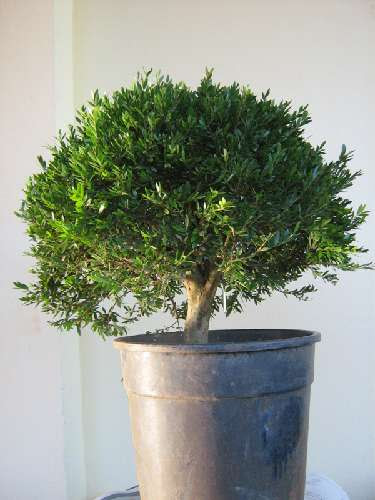 | Eu, particularmente, e repito, particularmente, acho a copa muito densa, se fosse minha escolheria alguns galhos no interior para cortar e fazer o ralheio. Não gosto muito de vasos com desenhos, eles distraem a visão do que deveria ser o foco (a árvore), pense na possibilidade de plantar em um vaso liso, como o da projeção. |