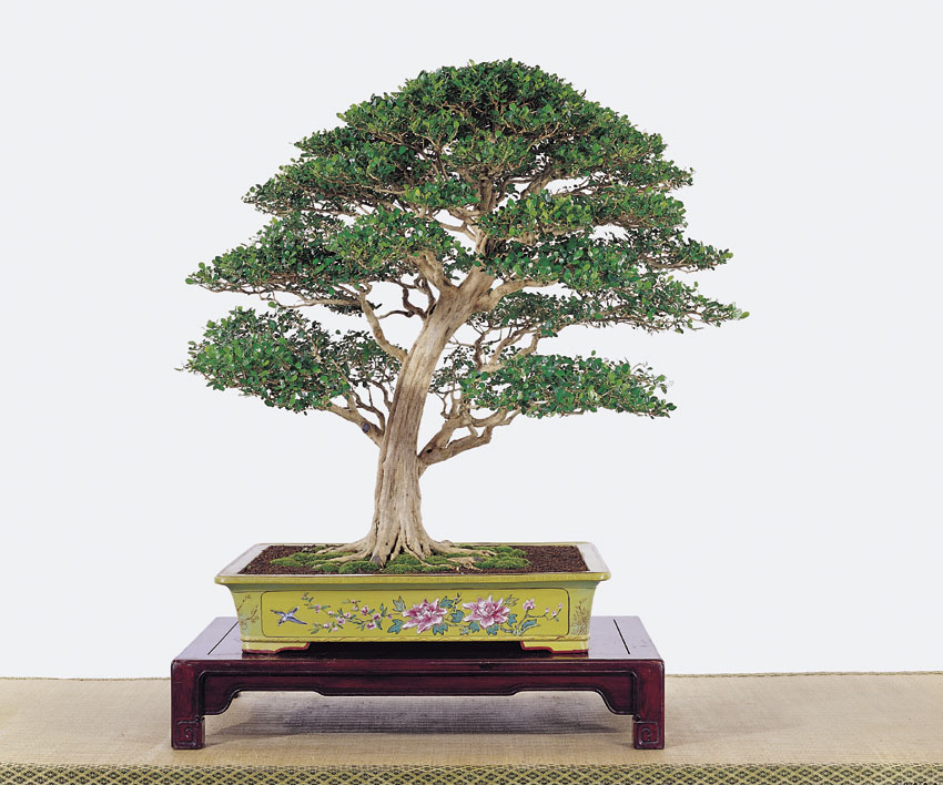 Murraia (Murraya paniculata) – Em suas zonas de origem, sul da China, Índia e Indonésia, esta árvore de folhas perenes e imparipinadas de cor verde intenso recebe o nome de “árvore de casca cosmética” já que sua casca é utilizada precisamente para a fabricação de produtos de beleza. Tem flores parecidas com a dos citrus, brancas, muito cheirosas e bagas vermelhas alaranjadas após a fecundação, que germinam com grande facilidade uma vez caídas na terra. Tem um tronco vigoroso, de aspecto envelhecido, com casca corticosa de cor beje acinzentado. Desta espécie, cujas formas bonsai procedem do sul da China ou Tailândia, conhecem-se exemplares muito bonitos e de idade elevadíssima.