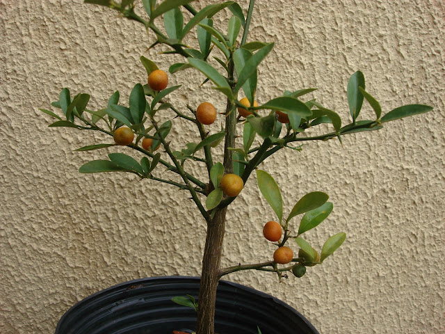 esta é uma muda de lanranja kinzu produzindo que ganhei do amigo bonsaista Paulo Ventura. Ela está produzindo a todo vapor.