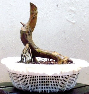 A planta possui cerca de 2 metros de altura, porém a dona não queria mais a mesma! Fiz um corte bem próximo para aproveitar a curvatura da base do tronco e retirei muita raiz pois a mesma estava no chão! Observem o nebari!