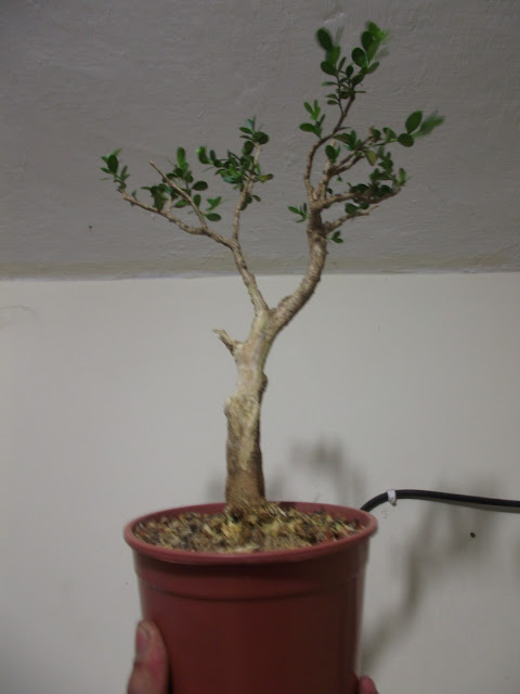 Quando comecei a me interessar por bonsai comprei um buxinho, e como não tinha o minimo conhecimento do que fazer, tirei o bonsai de onde estava e coloquei em um vaso menor com caqueira de tilojos.
