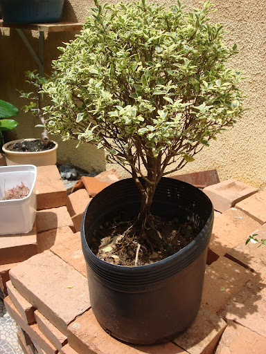 no último fim de semana, achei essa muda de Ligustro e comprei para tentar formar um bonsai com ele.